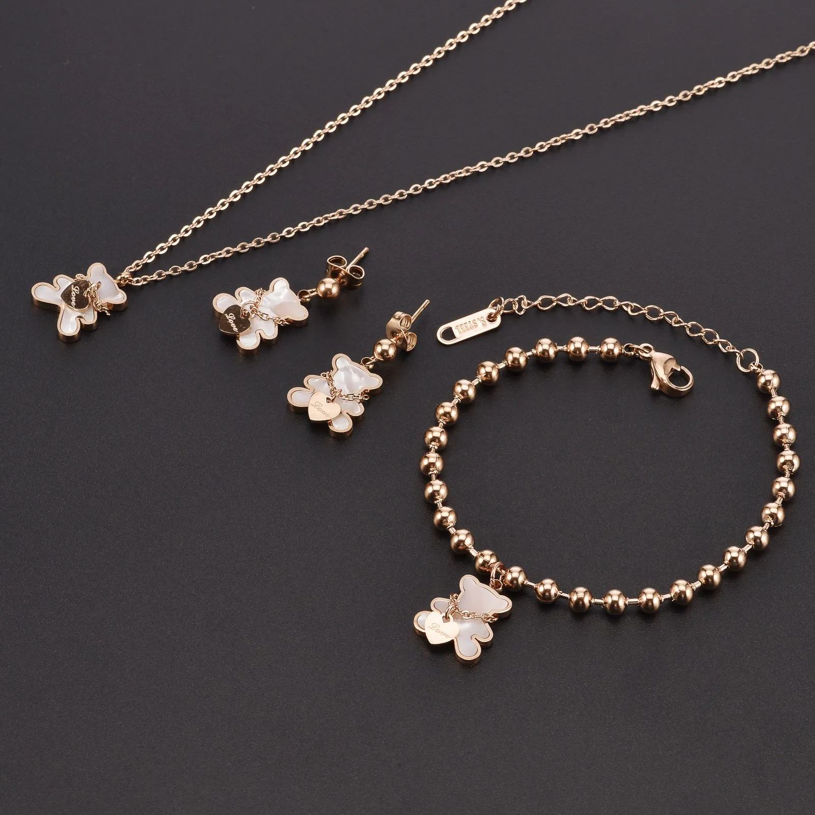 Jewelry Stainless Steel Necklace Bracelet Earring Set Black Shell Fashion Jewelry Accessories